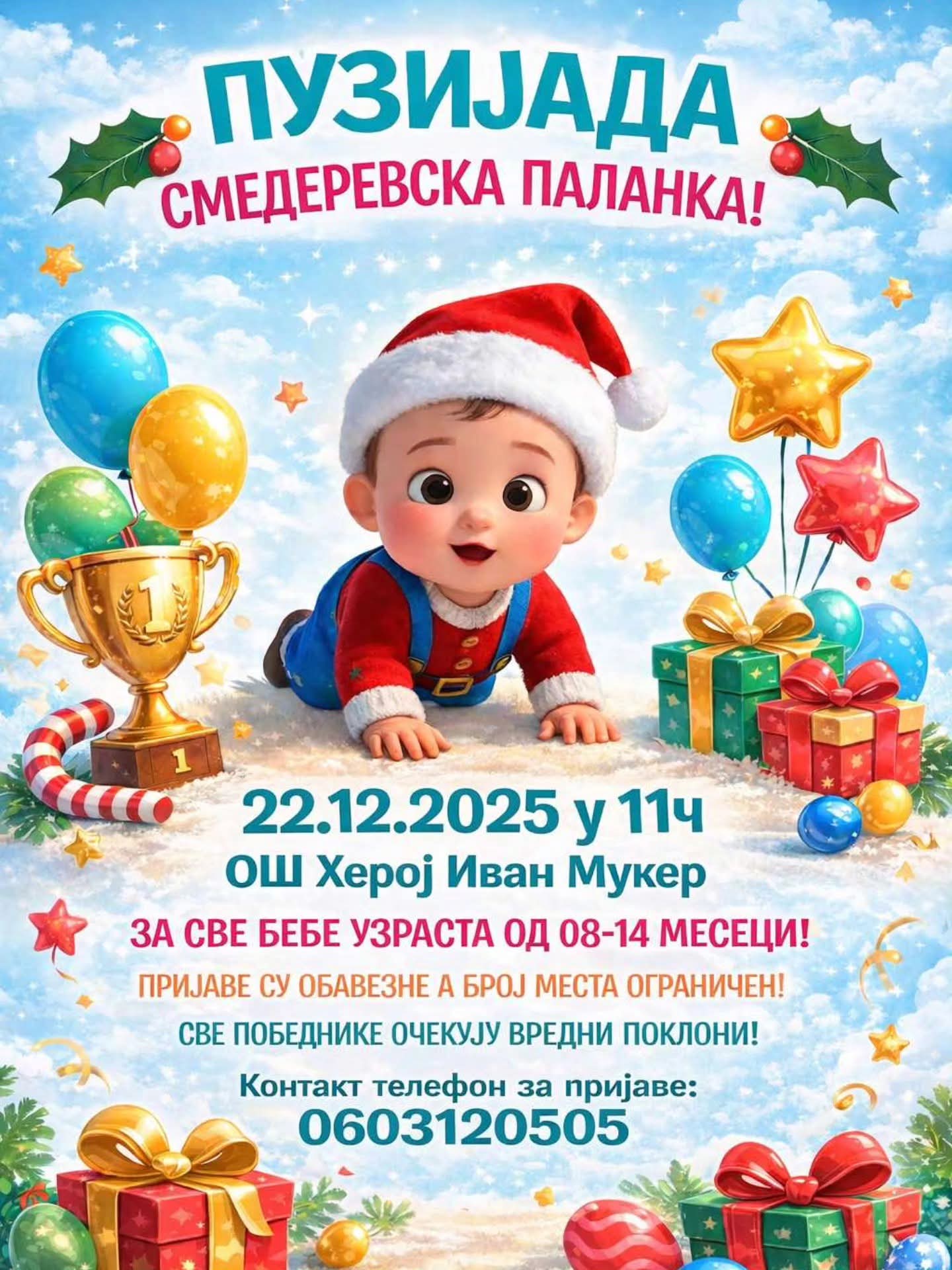Manifestacija namenjena bebama uzrasta od 8 do 14 meseci održaće se 22. decembra u OŠ „Heroj Ivan Muker“ u organizaciji Ministarstva za brigu o porodici i demografiju i lokalne samouprave.