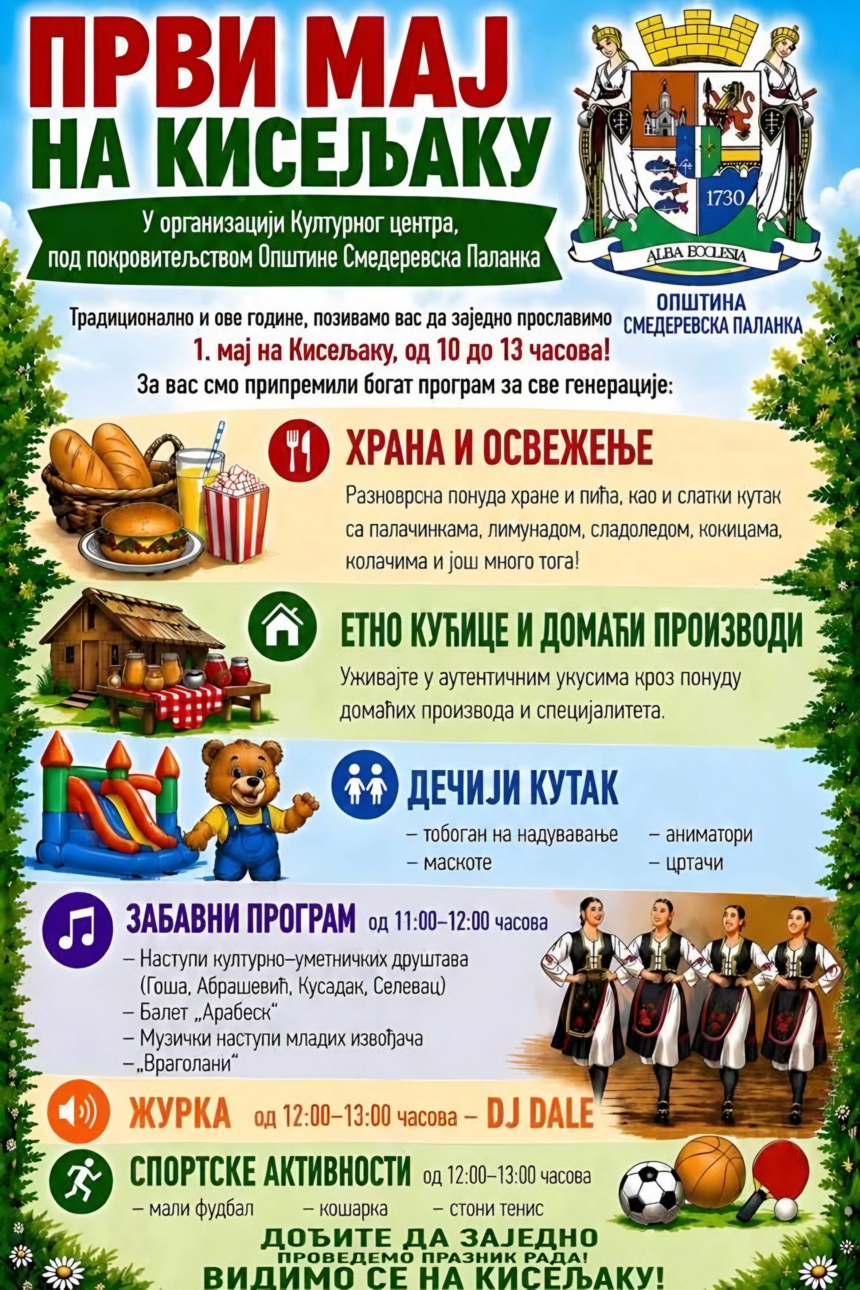 Opština Smederevska Palanka i Kulturni centar pripremili su sadržajnu proslavu Međunarodnog praznika rada koja 1. maja okuplja sve generacije sugrađana na omiljenom gradskom izletištu